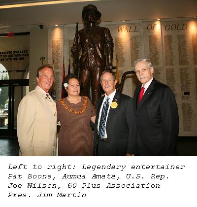 A long time community activist and member of numerous civic organizations, Amata also has served at the national level on the President's Advisory Commission on Asian Americans and Pacific Islanders and as assistant secretary of the 2000 Republican National Convention. She was 2003 "Woman of the Year" for the National Association of Professional Asian Women and was recipient of the International Leadership Foundation's "Visionary Award" this year. Pat Boone sings praises of Aumua Amata, other Lawmakers and Candidates August 08, 2008 ![]() PAT BOONE SINGS PRAISES OF LAWMAKERS AND CANDIDATES Legendary entertainer and 60 Plus Association national spokesman Pat Boone visited Washington, D.C. recently to present various lawmakers and candidates, among them congressional candidate Aumua Amata, with the organization's Honorary Guardian of Seniors' Rights Award. Aumua Amata is a candidate for American Samoa's non-voting delegate seat in the U.S. House of Representatives. She received the award along with U.S. Senator Wayne Allard (CO), U.S. Rep. Robert Aderholt (AL) and U.S. Rep. Joe Wilson (SC) in a ceremony near the U.S. Capitol recently. 60 Plus president Jim Martin said, "The Guardian Award is presented to Democrats and Republicans in Congress based on their 'senior friendly' voting records. The Honorary Award is given to those running for office and is based on their views on seniors' issues. We're pleased that Pat Boone took time from his busy schedule to present these citations. I know Aumua Amata was also appreciative. Pat Boone literally sang her praises." "Aumua Amata is always in the corner of the elderly and for that Pat Boone and I salute her," Martin said. Amata said she is deeply honored to receive the award and added that "caring for our elders is a fundamental obligation we have as part of our culture and we do it with joy, but I also want to be certain our senior citizens and their families get the full benefits all other Americans receive from the federal government." "Moreover, families who bear enough financial burdens as it is in caring for their senior members should not be penalized by having to pay an estate tax when they pass on," she added. "I stand with those who oppose such a tax." The 60 Plus Association is a 15-year-old nonpartisan organization working for death tax repeal, saving Social Security, affordable prescription drugs, lowering energy costs and other issues featuring a less government, less taxes approach. Reach the reporters at news.newsroom@samoatelco.com. Osini Faleatasi Inc. dba Samoa News reserves all rights. Amata's Pacific Notebook: Samoan Youth: Our Future is in good hands by Aumua Amata Reprinted from Samoa News July 19, 2008 This past Sunday I had the honor of being invited by Reverend Aliioaiga Filoialii to be part of his CCCAS Church worship service in Faleniu. My role was to present to the parents of Andrew Pati Ah Young the Mortar Board certificate of induction he received in April on the campus of the University of New Mexico in Albuquerque. ![]() Established in 1918, Mortar Board is a national honor society that recognizes rising college seniors for excellence in the areas of scholarship, leadership and service. Mortar Board members represent the top scholars and leaders on their campuses. In its 90 years of existence, only fewer that a quarter of a million students have been initiated at 226 chartered chapters across the United States representing the top schools in the country. Mortar Board provides opportunities for continued leadership development, promotes service to colleges and universities and encourages lifelong contributions to the global community. Additionally, Mortar Board offers numerous benefits and opportunities to members, including career networking, fellowships and awards. In short, it is a very prestigious group and we all can be proud that one of our own sons of American Samoa has become a member. Andrew was valedictorian for the Tafuna High School Class of 2005 and is attending UNM on a Bill Gates Millenium scholarship he told me he found as the result of an application announcement I had publicized in the media that year. Andrew and I have remained in communication since then and by the sheerest of coincidences my husband and I were scheduled to be at a conference in Albuquerque the day he was to receive the award. So he invited us to attend and we gladly did.