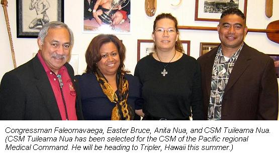 "The radio program has been a great service in informing our community about the issues and matters I am working on in Washington on behalf of our territory," Faleomavaega said. "It also has offered an excellent opportunity for our community to ask me questions or to seek assistance from my office on issues of concern to them."