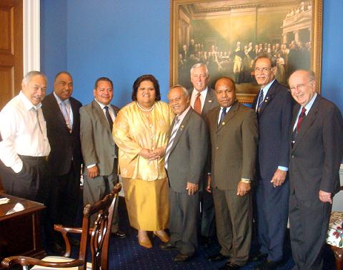 "Our meeting provided an excellent chance to discuss the key issues affecting U.S. relations with the Pacific Islands and the matters before the U.S. Congress having the greatest impact on the Pacific. In consultations the group held with Democratic Majority Leader, Rep. Steny Hoyer, as well as with Rep. Sablan of the Northern Mariana Islands, Rep. Berkley of Nevada, Rep. Engel of New York, Rep. Flake of Arizona and Rep. Watson of California, they had a chance to address these issues and stress the importance of refining and upgrading provisions of the Waxman Markey bill (the climate change legislation currently before Congress) designed to assist Pacific Islands and other vulnerable societies deal with the impacts of global warming," said Faleomavaega.