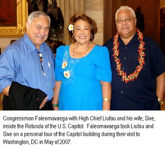 "I want to take this opportunity to thank my good friend, Chairman Rahall, for taking the time during this recess to include American Samoa as one of the site visits for the Congressional Delegation," Faleomavaega said. "This CODEL is significant given that the Chairman and Members of the Committee on Natural Resources have jurisdiction in the Congress over matters pertaining to the U.S. territories."