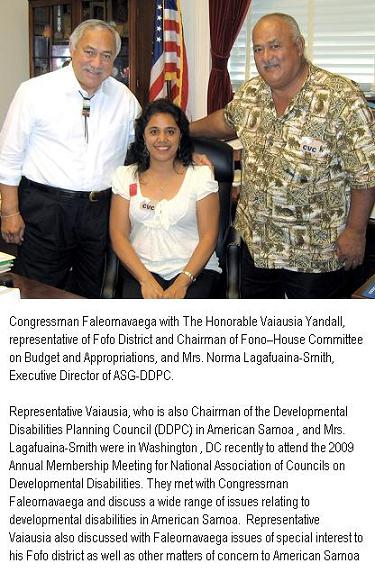 "I thank my colleagues in Congress for continuing to recognize and provide for the needs of our Territory," Faleomavaega concluded.
