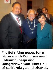 Congressman Faleomavaega announced today that President Obama has appointed Mr. Iosefa F. Aina as a member of the President's Advisory Commission on Asian Americans and Pacific Islanders (AAPI). This Commission is a component of Executive Order 13515 signed by President Obama to reestablish the White House Initiative on Asian Americans and Pacific Islanders.