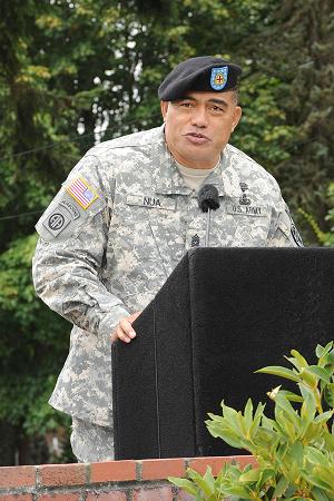 "I have had the privilege of serving with CSM Nua in Korea and at Fort Bragg, and I can tell you that he too is a Soldier's Soldier, and a leader of enormous character, energy, wisdom and passion," Volpe said.